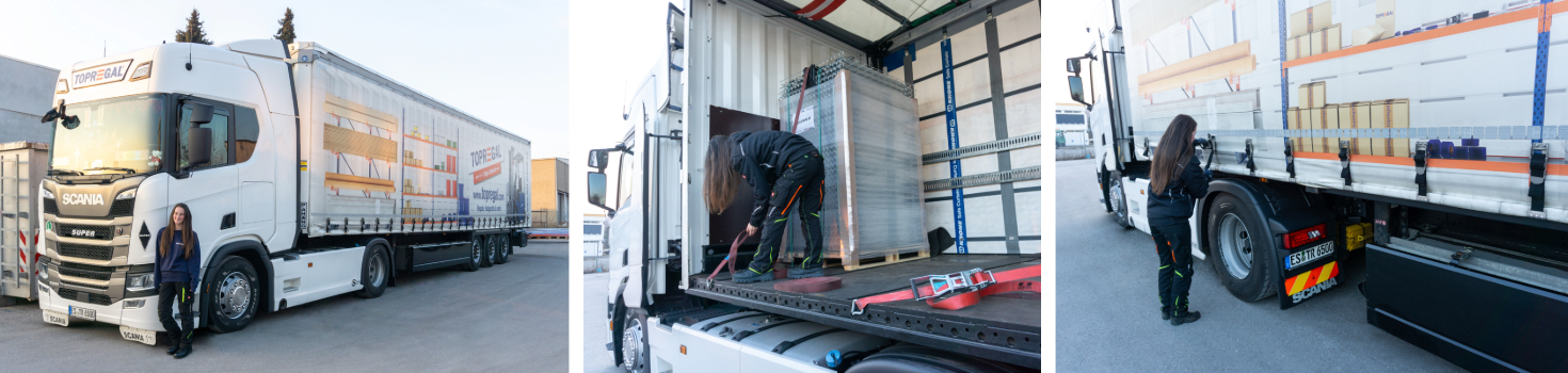Madlen: „Ja klar, aber das meine ich jetzt nicht im negativen Sinne, sondern im positiven. Wer als Arbeitgeber Männern und Frauen gleiche Chancen in der Speditionsbranche gibt, nicht nach Geschlecht, sondern nach den nötigen Skills und modern mit der Zeit geht, schafft sich eine größere Bandbreite und ein bunteres Spektrum an Fachkräften und kann viel flexibler agieren. Fließende Logistik funktioniert besser und sicherer, wenn ihre Dynamik aus einem guten Management entsteht, als wenn diese auf Druck und Drohungen aufbaut. Gute Geschäfts- und Abteilungsleitungen wissen das und können das praktisch im Team auch so delegieren. Bei TOPREGAL ist es zum Beispiel so, dass wir unsere Lenk- und Ruhzeiten fast immer selbst einteilen dürfen. Wichtig ist hierbei, dass die Ware pünktlich beim Kunden ist. Unsere Touren sind sehr gut geplant und dadurch haben wir weniger Druck.“