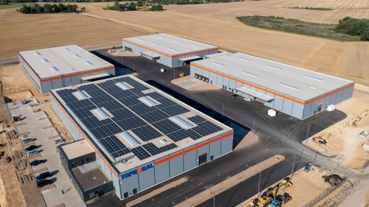 Die 5.000 Quadratmeter große Dachfläche der ersten Lagerhalle hat TOPREGAL mit einer Photovoltaikanlage ausstatten lassen. 1.680 Solarmodule wandeln das Sonnenlicht in elektrische Energie um und erzeugen somit genügend Strom für den Tagesbedarf der Hallen. An einem sonnigen Tag produzieren die Anlagen 3.000 Kilowattstunden – im Vergleich: Eine vierköpfige Familie verbraucht in der Regel im Jahr 4.500 Kilowattstunden durchschnittlich. „Wir steuern das Ziel an, alle Lkw mit sparsamen und modernen Verbrennungsmotoren auszurüsten und E-Autos einzusetzen“, berichtet Effner und ergänzt: „Alle Fahrzeuge sollen zukünftig mit dem eigenen Strom versorgt werden.” Des Weiteren nutzt TOPREGAL für ihre motorbetriebenen Flurförderzeuge Elektro- anstatt Verbrennungsmotoren als Antrieb. Besonderheit des Energiesystems: Eine Batterie mit einer Kapazität von 200 Kilowattstunden speichert überschüssige Energie und eine Software steuert die Ladevorgänge. „Steht einmal nicht ausreichend Energie zur Verfügung, stoppen ausgewählte Prozesse, um zu verhindern, dass externer Strom genutzt wird. Erst wenn wieder genug Kapazitäten vorhanden sind, startet die Software entsprechend wieder alle Prozesse”, erklärt Effner. Zu erwarten ist jedoch eher ein Überschuss an Energie, die TOPREGAL in das regionale Energienetz einspeisen wird. Außerdem stellt das Unternehmen für lang angereiste Lkw- und Speditionsfahrer extra Bereiche zur Verfügung, die zum Ausruhen dienen. Bis zum Jahresende sollen 30 Mitarbeiter und langfristig 100 Mitarbeiter eingestellt werden.