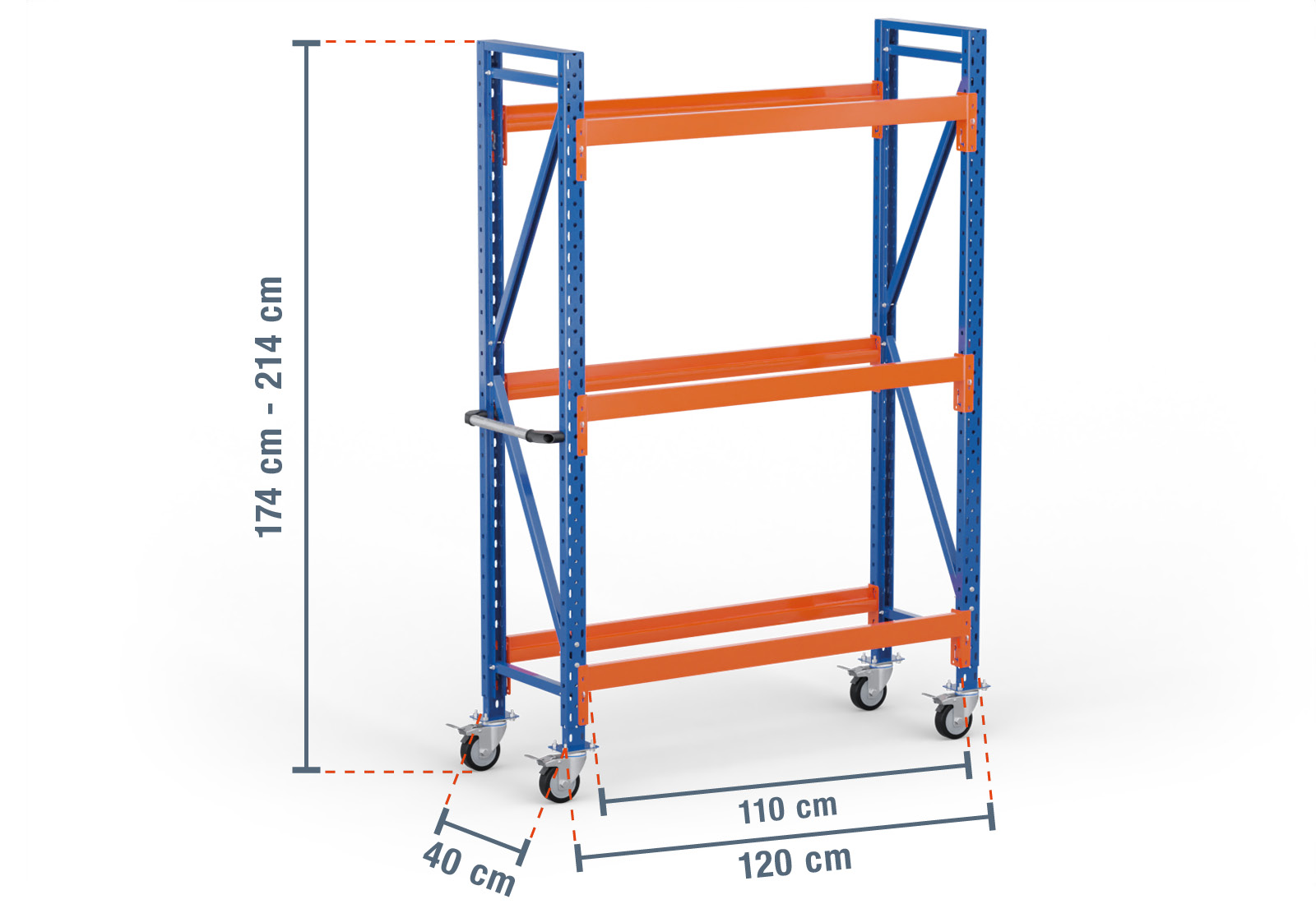 1,2 m Reifenregal fahrbar RR2000 / 40 cm tief / 1.740 - 2.140 mm hoch / 3 Ebenen