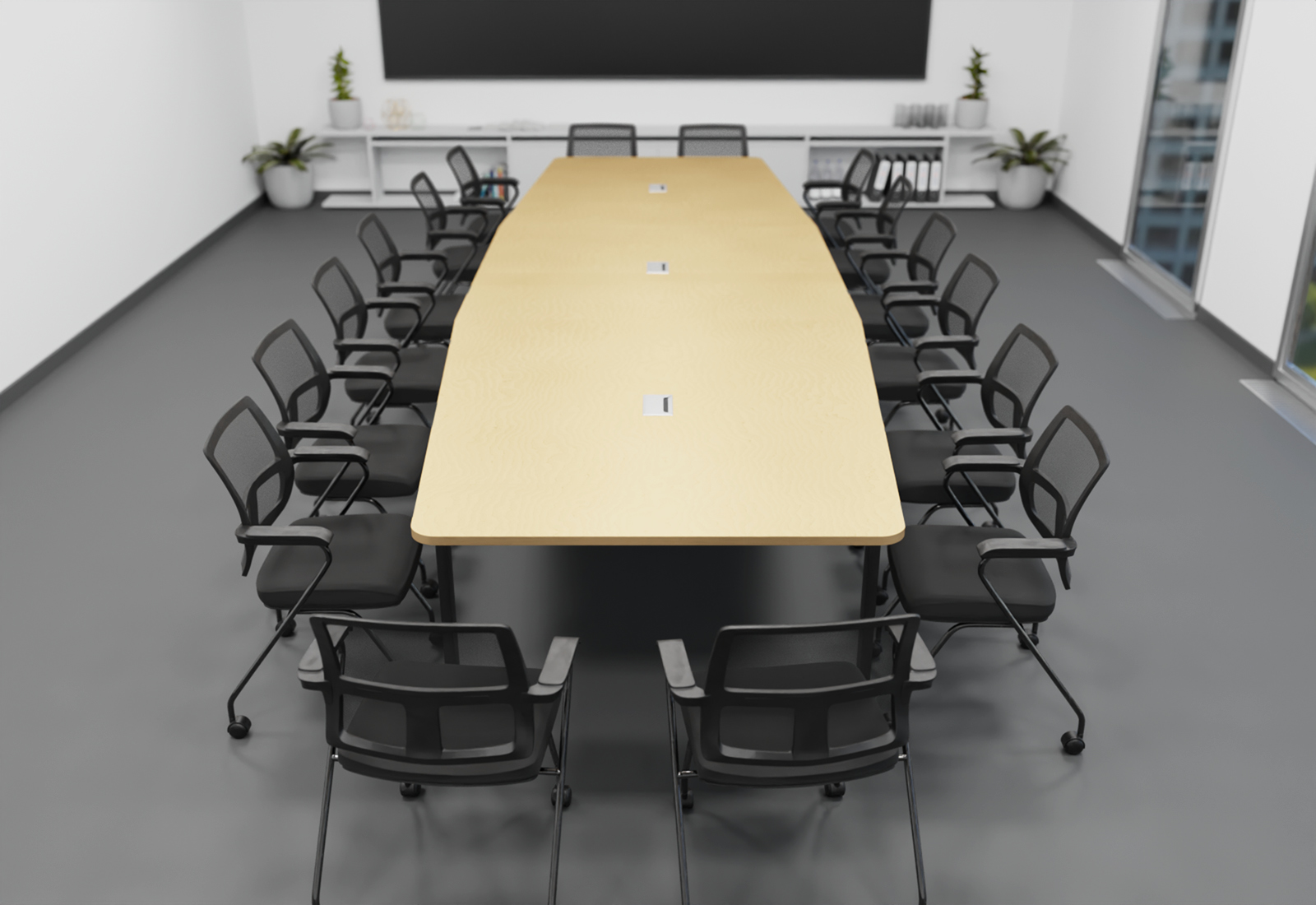 Konferenztisch ELLA480 Beige mit Kabelkanal + 16 Stühle EMMA