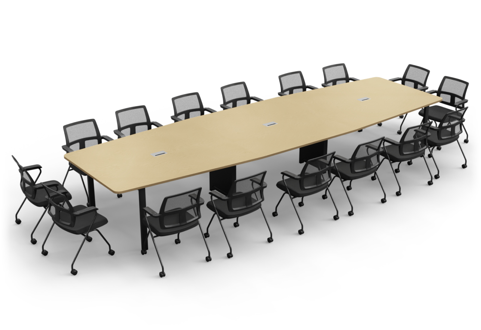 Das schlichte Design mit der beigen Platte in Ahornoptik und den grauen Standfüßen aus Metall fügt sich in nahezu jede Umgebung natürlich ein. Besonders empfehlenswert ist hier die Kombination mit unseren Konferenzstühlen EMMA, welche optisch perfekt auf den Tisch abgestimmt sind. Die vier zylindrischen und die zwei zusätzlichen platten Tischfüße in der Mitte des Konferenztischs sorgen für Stabilität. Die hölzerne Tischplatte ist besonders robust ausgelegt, sodass sie auch nach intensivem Gebrauch, mit Aufschrieben von Hand oder verschüttetem Kaffee lange gut aussieht. Hier kann auch gut mal auf den Tisch gehauen werden, um einen Standpunkt klarzumachen.