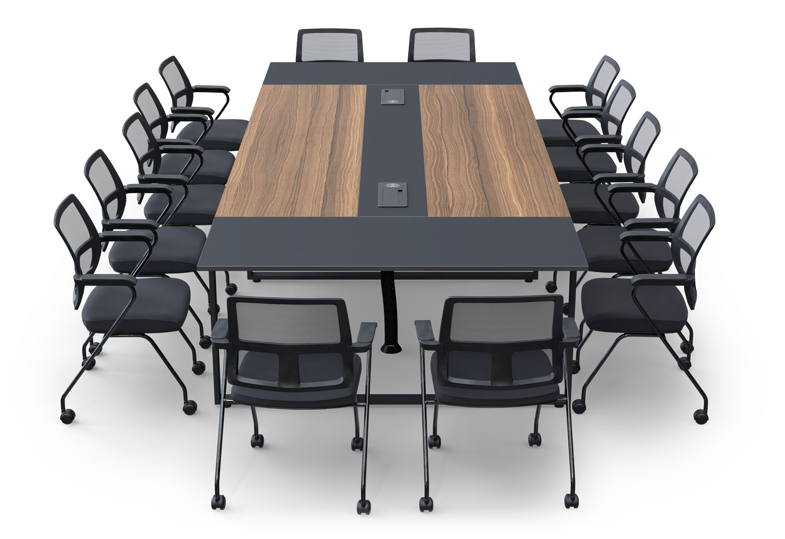 Konferenztisch-Set ANJA360 in Grau-Nussbraun + 14 Stühle EMMA