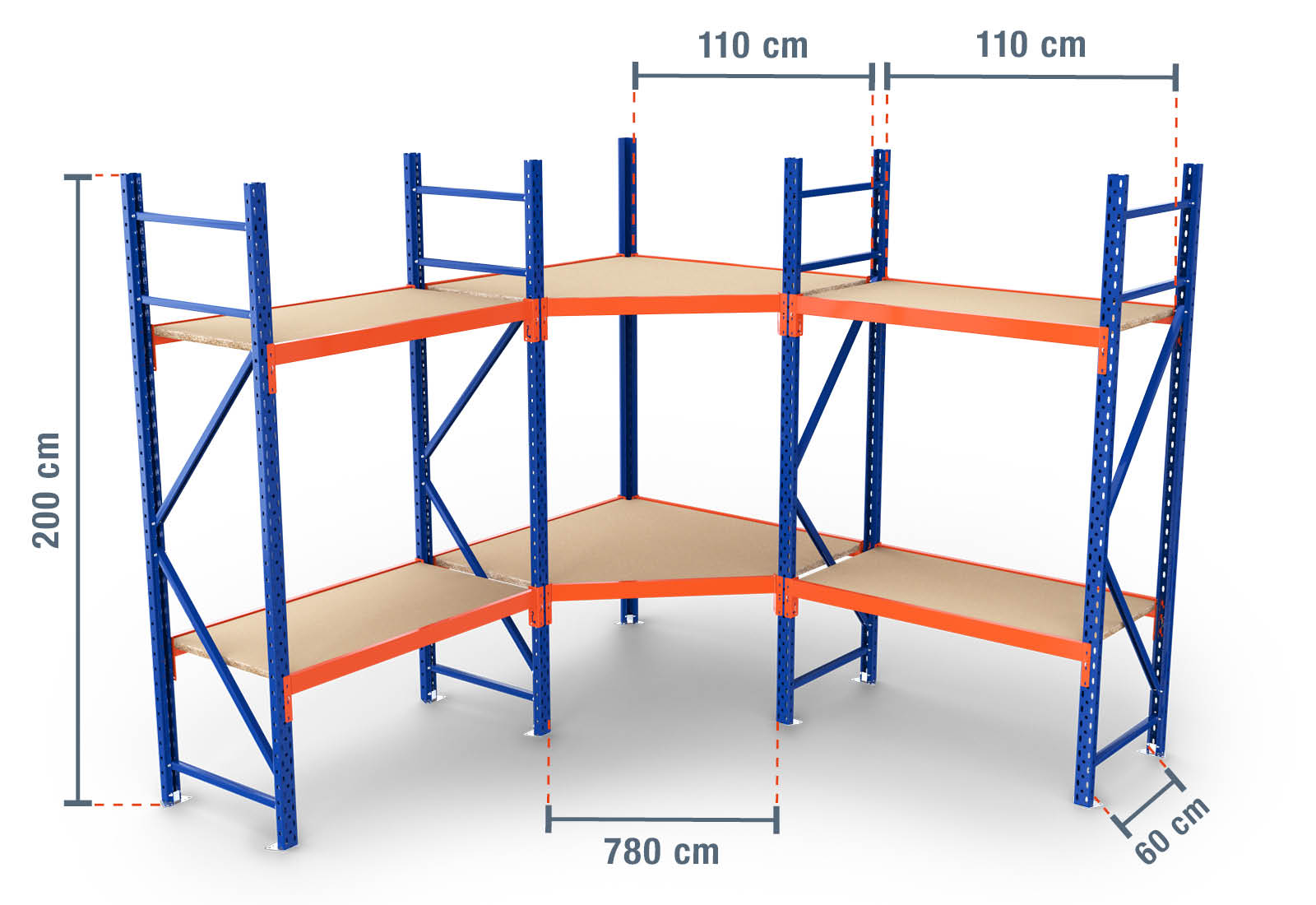 Mit dem praktischen Eckregal-Feld, welches in diesem Komplettangebot integriert ist nutzen Sie die sonst toten Ecken in Ihrem Lagerregal. Hier lassen sich Kleinteile, Sichtlagerkästen und andere Waren, die sonst keinen Platz in Ihrem Regal finden würden optimal lagern. Damit nutzen Sie Ihre verfügbare Fläche komplett aus.