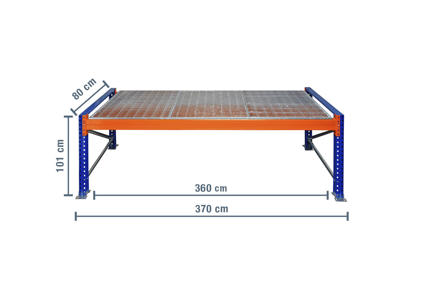 - 1 x Palettenregal Gitterrost, 360 cm x 80 cm (4 Module pro Ebene)